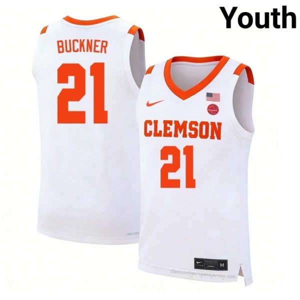 Clemson Ace Buckner #21 University Jersey | Elite Stitched Youth Basketball White